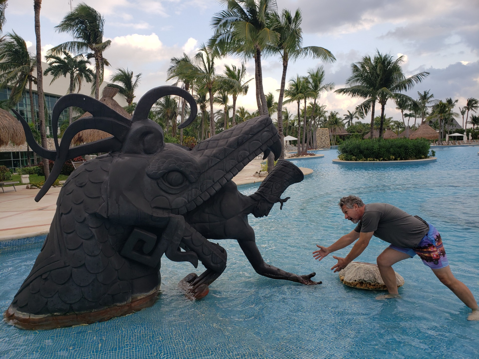 Sometimes you have a bad day, sometimes they have you by the tail (or worse!), but this poor guy really needs help. Here at the Riveria Maya in the Yucatan, Vidanta makes crazy things appear. Flamingo races, Iguana speed bumps,
